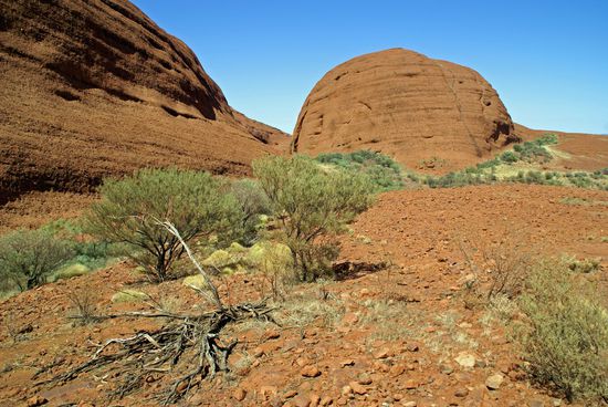 Mit 546m ist der höchste Punkt rund 200 m höher als der Uluru (348m). 36 Felskuppeln ragen aus dem sonst kargen Land heraus.