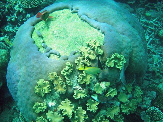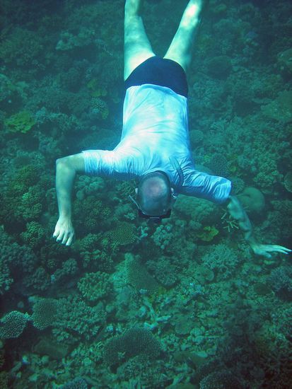 Dann holte sie eine riesige Seegurke hoch und zeigte sie uns, und dann, wie die Polypen an den Korallen sich blitzartig zusammenziehen können. War sehr interessant.