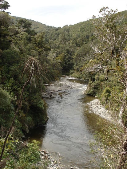 vorgestern hatten die schweden und ich unseren freien tag. da faehrt man ein paar minuten durchs herr der ringe land (s.o.) und zack- regendwald! da haben wir glatt ne wanderung unternommen, den sogenannten swingbridge track!