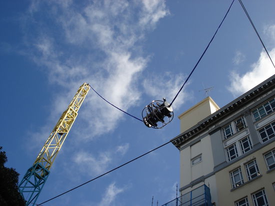 man wird "nur" mit mehreren gurten festgeschnallt.. ich dachte naemlich vorher, da ist so eine art kaefig um einen herum.. tja. war aber nich. ab diesem zeitpunkt hatte ich ein wenig schiss..