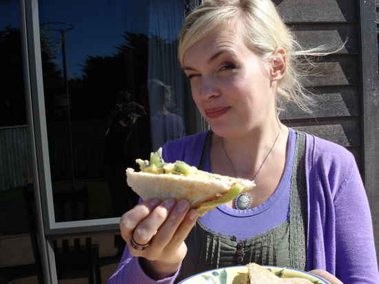 ich weiss, ich seh nich so aus, aber der toast schmeckt mir! eigene kreation mit blaukaese und kiwischeiben.. yummi!