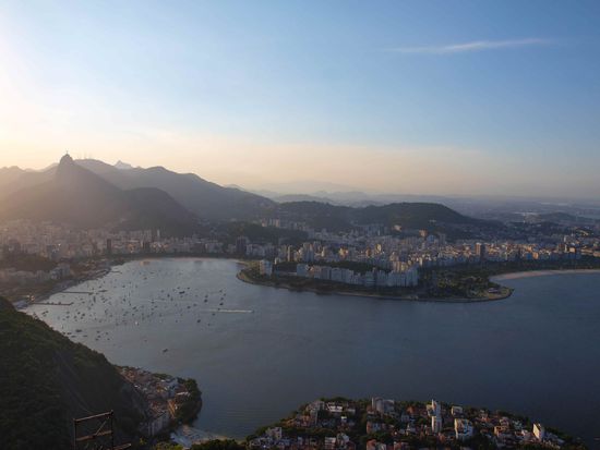 Samstags ist dann die Innenstadt wie ausgestorben, wohl weil jeder der nicht unbedingt muss bei jetzt mittlerweile 38°C, im Haus bleibt. Wir fahren mit der Fähre auf die andere Seite der Stadt und verbringen ein paar schöne Stunden an einem der unzähligen Strände mit Blick auf die komplette Stadt. Gegen Abend machen wir uns auf den Weg zum Zuckerhut. Diesmal wird das Bezahlen des horrenden Eintrittspreises belohnt und wir haben eine wunderbare Aussicht auf die gesamte Stadt und den Cristo Redentor, die Jesusstatur.