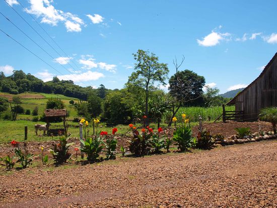 Am dritten Tag fahren wir zusammen mit Milton aufs Land um die Ursprünge der Familie Stapenhorst in Brasilien zu erkunden. In der von Landwirtschaft geprägten Landschaft seht ein kleiner Hof auf dem noch heute ein Teil der Familie den kleinen Betrieb bewirtschaftet.
