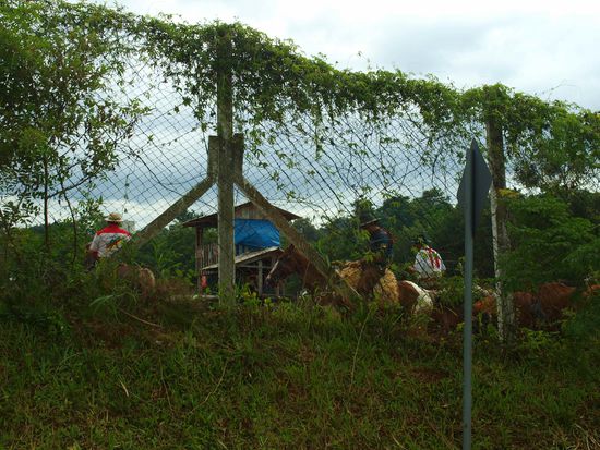 Eine weitere, zum Glück jedoch nur kurzzeitige, "Unbequemlichkeit" stellte sich ein als nach einem kurzen Busstopp ein stämmiger unrasierter Brasilianer im schmuddeligen Unterhemd den Bus betrat. Beim Eintreten zog er diesen den Bierbauch nur ungenügend verdeckenden Stofffetzen lässig über den Bauchnabel und darunter, für alle Passagiere deutlichst sichtbar, kam direkt über seinem besten Stück steckend eine Pistole zum Vorschein!