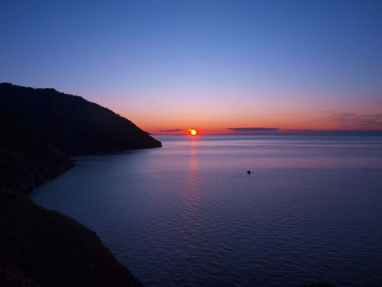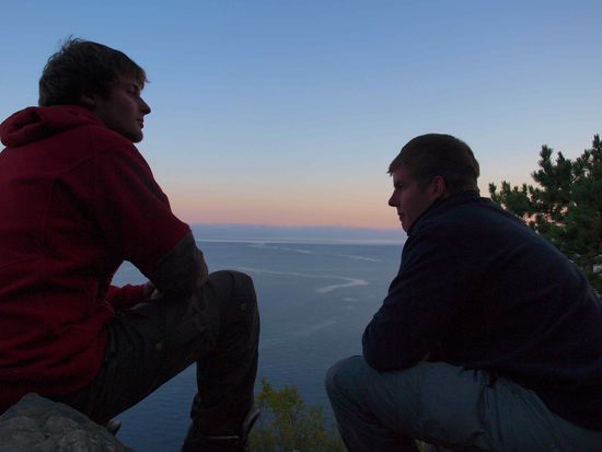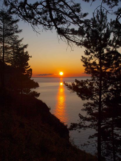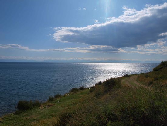 Mit einem mitlerweile fachmaennischen Blick steuern wir das Touribuero an, schoepfen Informationen ab, und los gehts! Wir wandern am Seeufer entlang und steigen vom ca. 3-4m breitem Steinstrand den steilen Uferhang empor. Von einem Felsvorsprung haben wir eine ueberwaeltigende Aussicht ueber das glasklare, trinkbare Wasser des Sees und die einmalige Landschaft. Wir schlagen unser Zelt am schiefen Hang auf, machen ein Feuer und verbringen so die doch etwas kaeltere Nacht im Zelt. Dazu sei noch gesagt, am Tag zuvor hatte es in Sibirien zum ersten Mal nachts gefroren, da muteten unsere Sommerschlafsaecke doch etwas duenn an, aber es ging einigermassen gut...