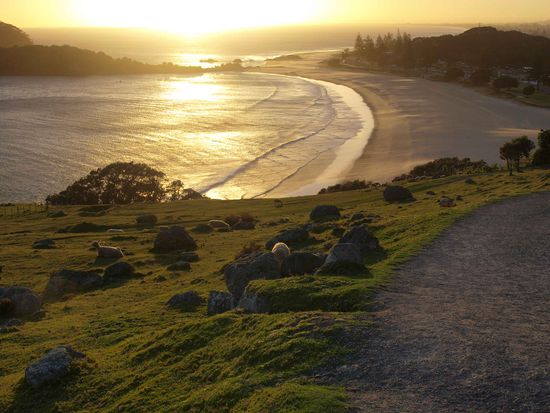 Nachdem wir gegen Mittag des darauffolgenden Tages in Rotorua vom Magicbus aufgesammelt werden erreichen wir gegen Abend Mt. Maunganui und wir genießen den schönen Tag am Stand.