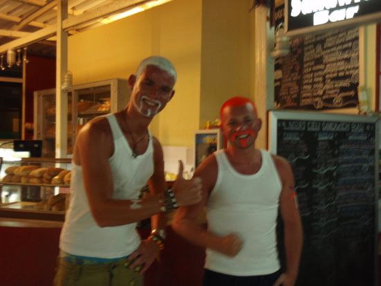 Je naeher die Fullmoonparty kam desto groesser, absurder und laenger wurden die Naechte, und kuerzer die Schlafpausen (ich habe die letzten 5 Tage NIE mehr als 4 Stunden gemuetzt) und desto mehr verschwamm alles zu einem einzigen PatyBrei. Die letzten 3 Naechte machten wir uns gar nicht erst wieder die Muehe auszunuechtern (bis auf die FulMoon die ich komplett nuechter bis um 10 Uhr Morgens bestritt, endlich mal was worauf man stolz sein kann), man nimmt einfach 2 Schmerztabletten gegen das Fieber (musste ja so kommen) und macht gleich weiter. Wie auch immer, hier kommen ein paar Impressionen damit ihr fuer eurere naechste WG-Party was zum vergleichen habt