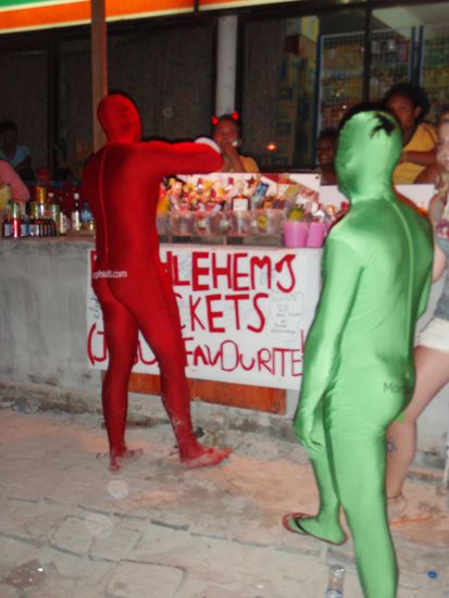 Geschichte am Rande: Der Typ im roten Anzug hat waerend dieser 2 Tage seine Freundin (blaues Kleid) verlohren, worauf er sich mal kurz den Arm mit "Nothing Is Forever" taetowieren lies