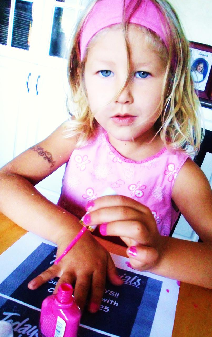 gut. also rosa nagellack und schon hat man sie fuer ne halbe stunde ruhig sitzend am kuechentisch