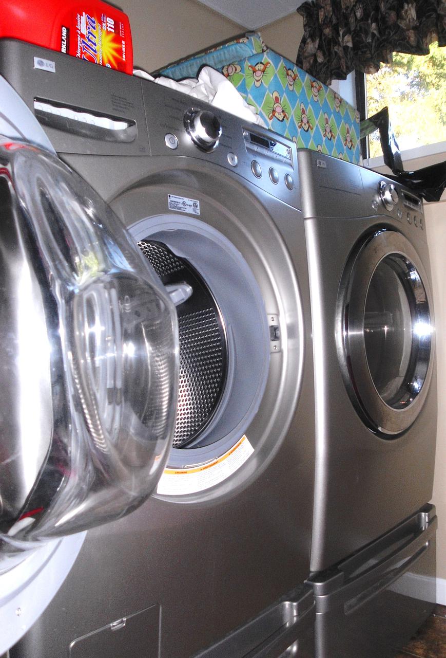 wie zum beispiel diese waschmaschinen... fuer ne fuenfkoepfige familie... dies ist ein normaler raum und man sieht, sie reichen fast bis zur decke...