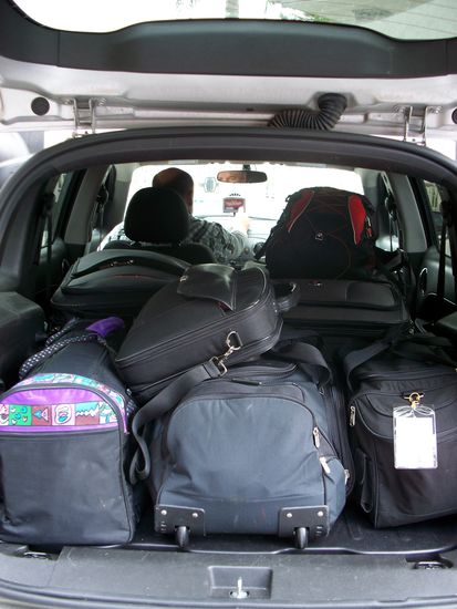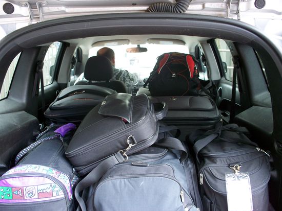 Bepackt wie die Maulesel ging es zum LAX. Einchecken, Übergepäck bezahlen, Security und Boarding - alles gut bis hierher