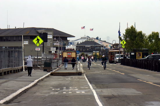 Im Hard Rock Cafe am Pier holten wir uns ein Shirt und spazierten bei mehr als frischen 12 Grad noch kurz durch das Geschehen. Da es wie so oft in S.F. Nebel hatte war von Alcatraz und der Golden Gate Bridge nicht viel zu sehen.
