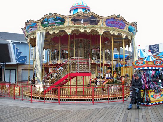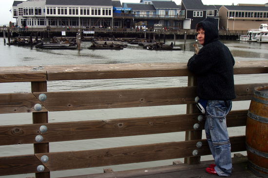 Als wir wieder in der Bay Street ankamen war es immer noch saukalt, so dass ich mir im nächsten Souvenirshop von Claudi ein Sweatshirt schenken ließ. Danke mon Amour! Nun machten wir noch einmal einen ausgedehnten Spaziergang über den benachbarten Pier 39.