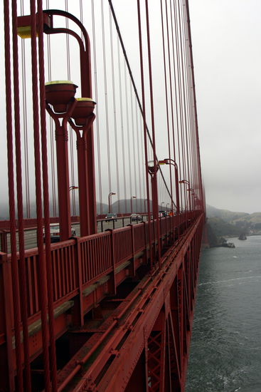 Ursprünglich hatten wir vor, mit dem Schiff nach Alcatraz zu fahren, aber da wir nicht schon im Voraus gebucht hatten schauten wir in die Röhre. Die Alcatraz Cruises waren schon die nächsten zwei Tage komplett ausgebucht. Deshalb empfiehlt es sich, die Tickets schon im Voraus zu buchen; dazu sollte man jedoch die genaue Zeit des Aufenthaltes in S.F. wissen, was bei uns nicht der Fall war und wir auf eine Onlinebuchung verzichteten. Da wir erklärte Kulturbanausen sind und uns die meisten Museen kalt lassen fehlte jetzt nur noch ein Punkt auf unserer Liste: Die Golden Gate Bridge. Hier hatten wir saumäßig Glück und fanden am total überfüllten View Point einen Parkplatz.