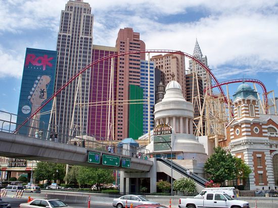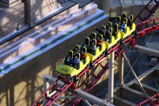 Zuerst besuchten wir das New York, New York, welches nicht weit vom Luxor entfernt liegt. Dieses Casino hat eine eigene Achterbahn, die nicht von schlechten Eltern ist.
