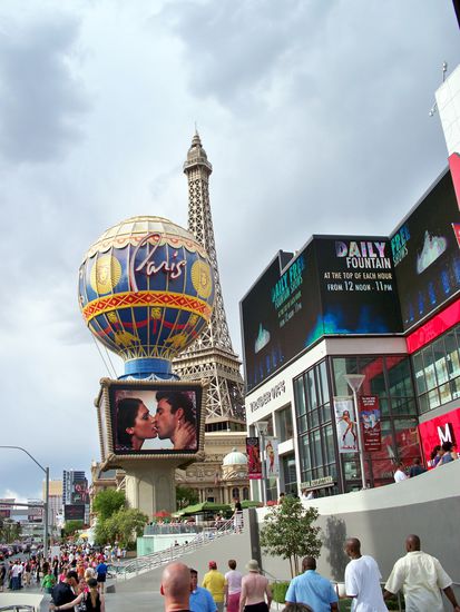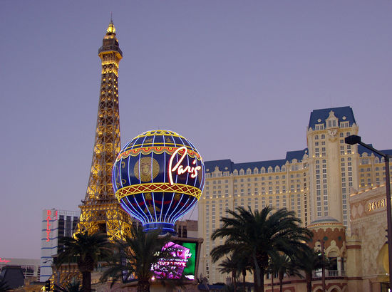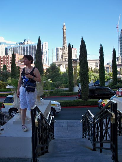 Im Inneren des P. H. ist außer dem Casino eine riesige Shoppingmeile, die von einem täuschend echt aussehenden Himmel überragt wird. Jede Stunde bricht hier ein Gewitter mit Regen, Blitz und Donner los. So etwas verschlug uns glatt die Sprache. Nachdem wir während des internen Gewitters einen Cappucchino getrunken und im Casino etwas gezockt hatten, gingen wir weiter den Strip entlang bis zum Paris Hotel und Casino.