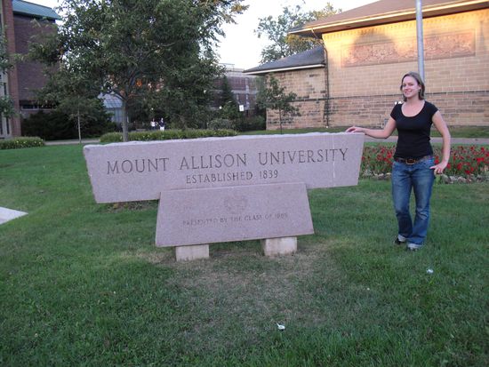In den ersten paar Tagen haben wir Internationalen also den Campus, die Uni und die Stadt etwas nähergebracht bekommen sowie einige Infos über das Uni-System und Gesundheitsangelegenheiten bekommen (hier wird ziemlich viel vor der Schweinegrippe gewarnt: "Wash your hands", "Don´t sneeze in your hands, but in your elbow" etc. - verständlich, weil sich hier in den Wohnheimen wahrscheinlich Krankheiten ziemlich schnell ausbreiten). Außerdem haben wir uns gegenseitig kennengelernt. Das war wirklich schön, weil ich mich sonst noch nie wirklich mit Leuten aus z.B. Japan oder Indien unterhalten habe. Die meisten internationalen Studenten kommen übrigens aus China, danach aus den USA und von den Bermudas. Interessante Mischung also. Neben den ganzen Infos haben wir auch ein paar Fahrten unternommen - so z.B. nach Moncton (huiii - da war ich ja noch niiie) und an den Parlee Beach ganz hier in der Nähe, wo man im Prinzip schwimmen kann, aber es war zu kalt. Außerdem haben wir ein lustiges "Bonfire" veranstaltet, bei dem wir sog. "s´mores" gegrillt und dann gegessen haben. "S´more" steht für "some more" (also "noch mehr") und besteht aus zwei Keksen, zwischen die Schokolade und ein über dem Feuer gegrilltes Marshmallow gelegt wird (wieder was gelernt). Sehr süß und sehr lecker, wenn die Schokolade schmilzt. Übrigens: Geschmolzenes Marshmallow im Haar ist kein Spaß! Nicht in die Hände von Kindern geben!