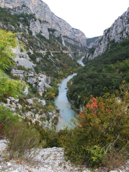 Nach gut einer Woche hieß es also Abschied nehmen von der Côte d'Azur, was erst mal nicht weiter schlimm war. Inzwischen hat sich nämlich das Wetter gewandelt und nach dem milden Spätsommerklima weht nun ein empfindlich kühler Mistral. Also verlassen wir als vorletztes Gespann den Campingplatz und ziehen weiter in Richtung Norden. Hierbei steigen mit jedem Kilometer, den wir ins Landesinnere fahren, die Temperaturen. Zunächst über die Autobahn bis Fréjus, dann über teilweise recht enge und kurvige Landstrassen geht es in bergige Regionen. Unser Ziel ist Europas "Grand Canyon" - der Canyon du Verdon.