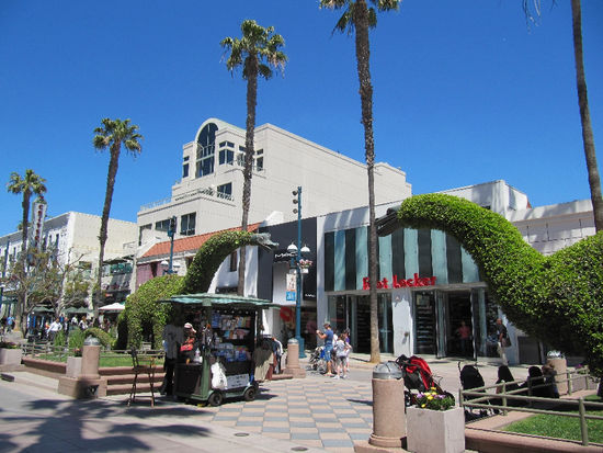 Das Frühstück im Westin war dann doch nicht ganz unserer Preisklasse entsprechend, weshalb wir uns etwas desorganisiert mit dem Shuttle wieder zum Flughafen aufmachten, um dort nach Essbarem zu suchen. Im Terminal 1,2 und 3 wurden wir nicht fündig, aber bei Terminal 4 hatten wir dann Glück und das daily special - das mich bis zum Abend satt hielt. Gleich mal ein deftiges Omlett mit Speck und Erdäpfel zum Frühstück, was will man mehr. Und mein Papa brachte seine erste englische Bestellung in den USA hinter sich, indem er einfach dasselbe orderte wie ich . Frisch gestärkt hielten wir nach dem nächsten Shuttle für die Autovermietung ausschau und nahmen kurz später unseren VW Rutan (Minivan) in Betrieb. Das Navi war damit nicht ganz einverstanden, weshalb wir mit dem nicht soo genauen Stadtplan erst mal nach einem Anhaltspunkt suchen mussten, bis wir schließlich am Santa Monica Pier unser Auto parkten. Ein Stunde Bummeln zwischen Pier und Third Street Promenade, sowie ein Körbchen Erdbeeren vom Farmer's Market später, hatte ich so eine Ahnung, dass das mit dem Parkticket und den Schranken hier anders läuft, kurz: wir hatten keinen Parkschein und sollten schleunigst zurück! Der Wächter war gottseidank gerade mit seinem Sandwich beschäftigt und spät dran, Andi bearbeitete den Ticketautomaten und schon hatten wir ein paar Dollar gespart und Nerven beruhigt.