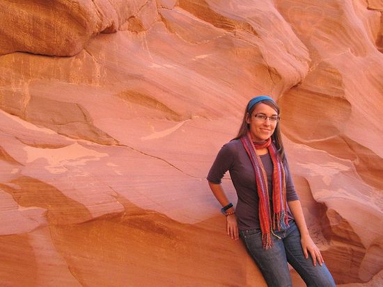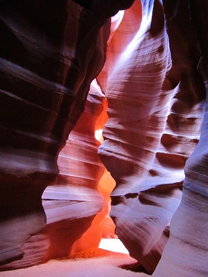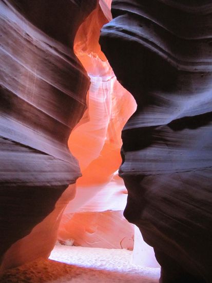 Am nächsten Morgen war wieder mal um 6 Tagwache, damit sich alle noch für die Wüste aufstylen konnten. Um 8 gings dann schon los in den Antilope Canyon - unsere Gruppe war die erste des Tages. Der Canyon hat seine Form durch Wind und vor allem Sand der durchgespült wurde erreicht und strahlt in geheimnisvollem rotem Licht. Um die Mittagszeit sollen sogar Lichtkegel durch die besondere Sonneneinstrahlung entstehen. Der Guide hetzte uns ein bisschen durch und zeigte uns alle wichtigen Foto-Positionen, wo wir sozusagen das meiste rausholen können, bevor dann eine Horde an Touri-Gruppen in den Canyon einmarschierte.