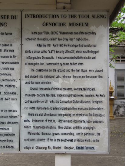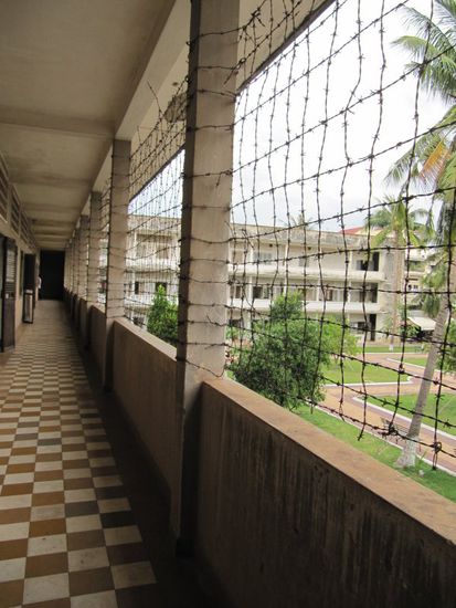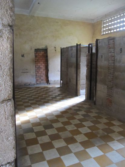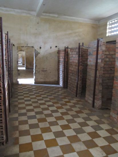 Auf der Fahrt in die Stadt haben wir kaum ein Wort gesprochen. Unser nächster Stopp war das Völkermordmuseum Tuol Sleng. Dieses wurde von den Khmer als Sicherheitsbüro S 21 verwendet, bzw. als Folterkammer und Gefängnis. Viele der hier Inhaftierten wurden später in Choeung Ek exekutiert, wenn sie noch nicht hier qualvoll gestorben waren.