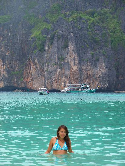 Tja und an unserem letzten Tag hatten wir dann mal volles Programm und haben uns in der Frueh (halb 12 mittags) ein Taxi Boat an den Maya Beach genommen und waren sehr gespannt. Die Anfahrt war fuer meine Begriffe etwas turbulent....die hohe See...hab mehrmals geglaubt wir kentern gleich..und war heilfroh als wir angekommen sind. Doch..hm...naja, der Strand ist halt nicht unbekannt....
