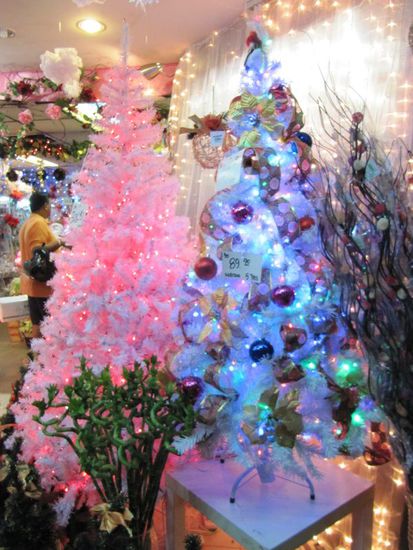Um 3 Uhr frueh in der Shoppingmall werden gerade die Schneeflocken befestigt