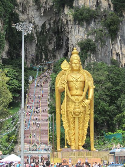 Der naechste Tag fing bedingt durch den langen Fernsehabend wieder mal sehr spaet an. Unser heutiges Ziel waren die Batu-Hoehlen etwas ausserhalb von Kuala Lumpur, die mehrere Hindu-Tempel beherbergen. Der Bus war schnell gefunden und eine halbe Stunde spaeter standen wir auch schon davor.