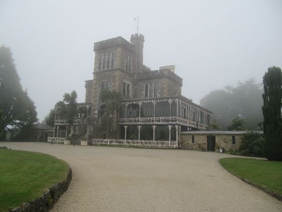 Die Aussicht morgens auf Dunedin war einfach mal schön. Und dann wollten wir gleich die Halbinsel begutachten, auf der wir uns befanden und starteten unsere Rundfahrt. Aber das Wetter war....schottisch...passend zu Dunedin. Denn diese Stadt hat mehr schottisches Erbe als sonst ein Ort in Neuseeland. Daher mussten wir natürlich auch gleich das einzige Schloss Neuseelands besichtigen, das Larnach Castle. Erinnerte mich sehr an Agatha Christie-Romane und ob der netten Ausstellungstücke ein bisschen an die heimischen Burgen und Schlösser in Österreich. Im Ballsaal, der später zugebaut wurde und mittlerweile ein Cafe beherbergt, folgten dann warme Scones mit Marmelade und Schlag....mmmmmh...und das bei Kaminfeuer und draußen Nieselregen. Eigentlich hätten wir für immer dort bleiben können.