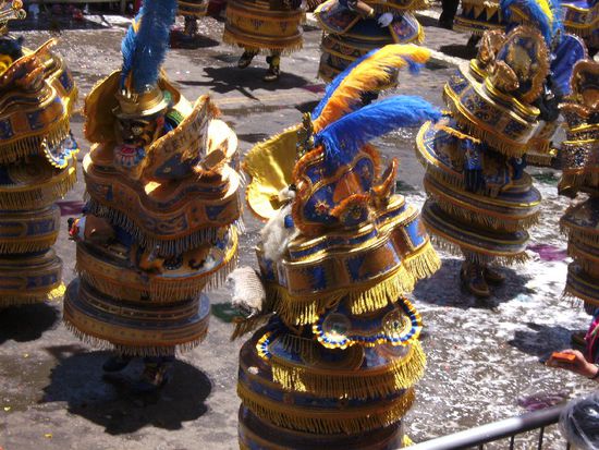 Ach ja, die Parade war auch unglaublich schön. Super Kostüme, Miniaturlastwägen und Gürteltiere als Ratschen und wilde Tänze begleiteten uns durch den Tag. Jede Gruppe hatte immer ein bestimmtes Thema zB Indiander, Tintenfisch, Ameise, Gürteltier, Regenschirm. Ja das hört sich jetzt lustig an, aber es waren halt Ornamente an den Kostümen dran, also so witzig dann auch wieder nicht. Nebenbei bekamen die TänzerInnen von den ZuschauerInnen immer wieder mal ein Bier spendiert. So wunderte es uns dann auch nicht, dass ein verkleidertet Hustinettenbär der eigentlich noch ziemlich jung war, irgendwann mit Kopf im Arm spazierte und sich auf der Paradestraße übergeben musste...die CarnevalsbetreuerInnen haben sich rührend um ihn gekümmert.