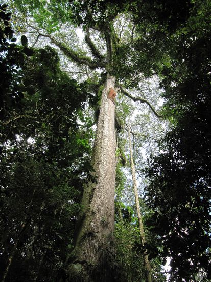 Nach dem Frühstück stand eine Wanderung an - wo wir wieder jede Menge seltsame Bäume sahen - zb Telefontree (ob der wirklich so heißt), als Abel mit der Machete draufschlug, war der Hall noch 1 km weit zu hören - soll verwendet werden, wenn man/frau sich verirrt. Oder auch die palmera caminante (Bild unten), die immer hin und her wandert. Außerdem wurde noch eine Yucca gefällt für einen leckeren Palmheart-Salat - hat doch etwas gedauert, und wieder Spuren. Diesmal sogar von einem Tapir. Ist aber leider nachtaktiv. Dafür jede Menge Affen, die aber als sie gut sichtbar waren nicht fotografiert werden konnten, weil sie bei freier sicht auch gerne mal runterpinkeln. Riesige Ameisen und schräge Raupen haben ebenfalls unseren Weg gekreuzt.