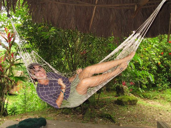 Vom ganzen bergauf bergab in der brütenden Hitze waren wir so geschafft, dass wir nach dem Mittagessen erst mal ein Schläfchen in der Hängematte brauchten. Ein kleiner Swimmingpoolbesuch war ebenfalls wieder Pflicht. Später am Nachmittag sind wir allerdings wieder rüber nach Pilcopata, da es wieder heftig regnen sollte und wir somit nicht in der Gegend zelten konnten und es auf dem Fluß gefährlich war.