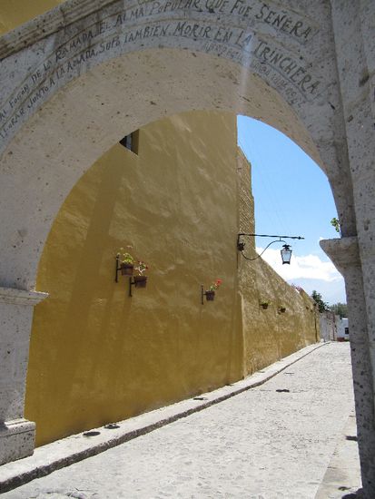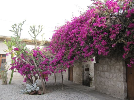 Um halb 7 kommen wir jedenfalls an und da ist doch tatsächlich schon was los auf den Straßen - nicht so wie in Cusco, wo alles um 9 noch vor sich halb hindöst. Wir checken gleich mal in die Casona de Jerusalén ein (etwas teuerer als bisher, aber der Neffe unserer Gastmum in Cusco arbeitet hier). Vor dem Frühstück buchen wir uns gleich noch die Bustickets nach Cusco zurück und eine Tour zum Colca Canyon - 1 Tag!! Normalerweise fahren dort alle zum Trekking hin, aber so viel Zeit haben wir nicht mehr. Somit heißt es am nächsten Tag um 3 Uhr früh Start!