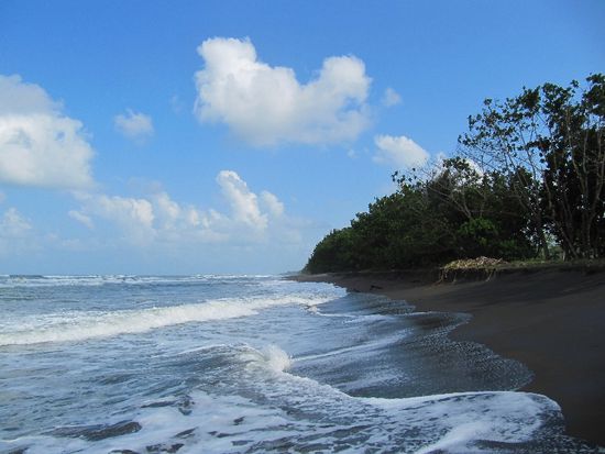 Bereits am ersten Abend durften ich und Andi gleich das erste Mal mit auf Patrol gehen. Andi startete um 10, ich um 12. Und es folgte auch der erste heftige Regenschauer - der sich gottseidank bis zu meiner Schicht wieder gelegt hatte. Jané, ich, Rimbert (der von vielen Rainbow genannt wurde, weil sie seinen Namen nicht aussprechen konnten), jemand vom anderen Camp und unser Guide Carlos marschierten also los. Die Taschenlampe hatte mir Andi vorher mit roten Plastiksackerl-Schnipsel fürs Rotlich präpariert, allerdings stellte sich heraus, dass wir ohnehin immer im komplett dunklen tappen...und deshalb immer wiedermal ineinander laufen oder über etwas stolpern. Nach 1 Stunde hatten wir bereits die erste Lederschildkröte (das sind die größten überhaupt) gesehen, allerdings drehte die nur am Ufer ein paar Runden und verschwand wieder. Und kurz vor Ende stolperten wir dann nahezu (also ich hätte sie nicht gesehen) plötzlich direkt auf dem Strand über eine riesige Schildkröte, die gerade ihr Nest ausgrub - wir halfen sogar ein bisschen. Und dann legte sie sagenhafte 101 Eier! Carlos sammelte sie danach in eine Plastiktasche und grub sie an einer anderen Stelle wieder ein - damit die Poacher (sprich Wilderer) sie nicht finden). Vermessen konnten wir sie leider nicht, da sie ständig in Bewegung war, aber trotzdem: WOW!