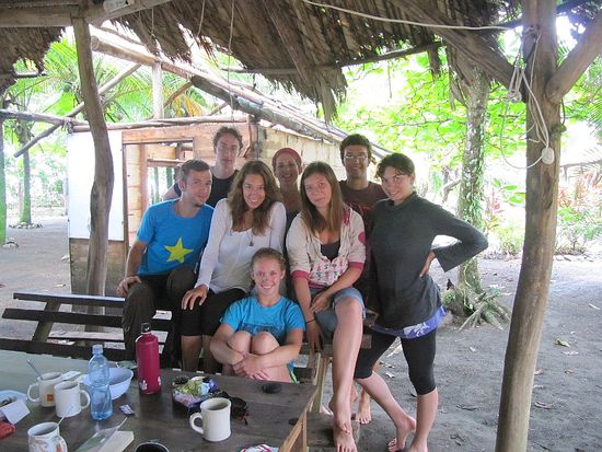 Am Vorabend der Anreise zum Voluntärsprojekt La Tortuga Feliz lernten wir dann schon mal Pete und Sara im Hostel kennen, die ebenfalls den gleichen Weg hatten. Und am nächsten Morgen waren wir dann noch um Liz, Elyse, Allison und Joe reicher (alle aus Conneticut wie auch Pete). Vor lauter Kennenlernen hätten wir fast den Bus nach Bataan verpasst, 10 min vor Abreise hat dann aber doch noch jemand auf die Uhr geschaut. Nach 3 Stunden Fahrt durch bergige Dschungellandschaft, die von dreckigen Flüssen (tatsächlich hat einer rio suzio geheißen) durchquert wurde, erreichten wir eine kleine staubige Stadt und gönnten uns die letzte Pizza für lange Zeit an einem umgebauten Bus. Robert, unser Projekt-Chief wartete schon auf die insgesamt 12 Neuankömmlinge und ließ uns noch etwas Zeit für letzte Hamsterkäufe. Mabel (Holland), Jané (Südafrika), Minnie (Schweiz) und Mary (USA) machten uns komplett. Den 2 Engländern vom Nachbarprojekt, die wir im Supermarkt trafen, wollten wir nicht so recht glauben, dass wir Cracker und Cola wirklich vermissen würden - unser Bedarf hielt sich auch sonst in Grenzen - naja, es kam dann doch anders. Auf jeden Fall gab uns Sam schon mal einen kleinen Vorgeschmack auf die Sandflohbisse...