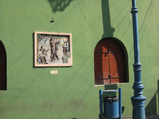 Überall tolle Tangobilder. Der Tango wurde in La Boca um 1920 geboren. Dort hatten sich viele Einwanderer niedergelassen und brachten im Tango ihre Sehnsucht nach Frauen und einem besseren Leben zum Ausdruck. Damals noch mit einer sehr frivolen Sprache.