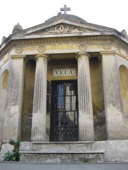 Es handelt sich nicht um normale Gruften, sondern fast schon "Häuschen", wo bis zu 30 Särge untergebracht sind. An der Seite (innendrin) ist jeweils ne Treppe, über die die Särge ins Dunkel der Nacht nach unten gebracht werden. Auf der ebenerdigen Etage ist in der Regel die Mutter und der Vater der Familie mit Sarg oder Urne aufgebahrt.