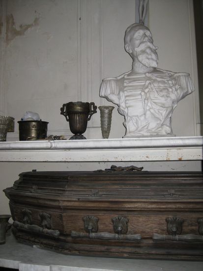 Hatte sogar die Ehre, das Innere einer Gruft bestaunen zu duerfen und nach unten zu gehen. Als ich über die Treppe in der zweiten Etage unterirdisch ankam, hatte ich bissel Schiss, dass mich die 2 Männer, die mich reingelassen hatten, nun einschliessen würden. Man weiss ja nie. Da unten war es zapfenduster und ein Sarg war an den anderen gereiht. 10 Stueck in einem Raum. Recht gruselig.