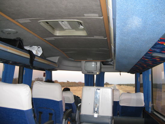 - 2. Bus: leider gehen alle Leselampen nicht, es ist gerade mal 20 Uhr, aber draußen zapfenduster. Schade, hätte gern bissel gelesen. Die Hitze (immer noch 30 Grad wie im ersten Bus) macht uns zu schaffen. Klimaanlage ist wieder ausgefallen.