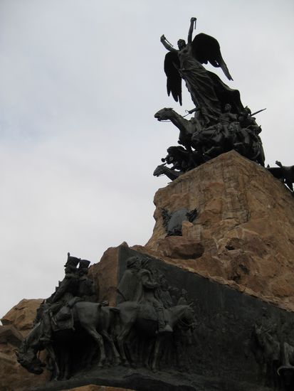 Zurück in Mendoza: Im grossen San Martin Park befindet sich auf der Bergkuppe die San Martin Statue. Ein Monument was an den Freiheitskampf des San Martin erinnert. Sie wurde 1914 gebaut, ist aus Bronze und die vielen Details und die dreidimensionale Darstellung all der Details ist einfach der Hammer.