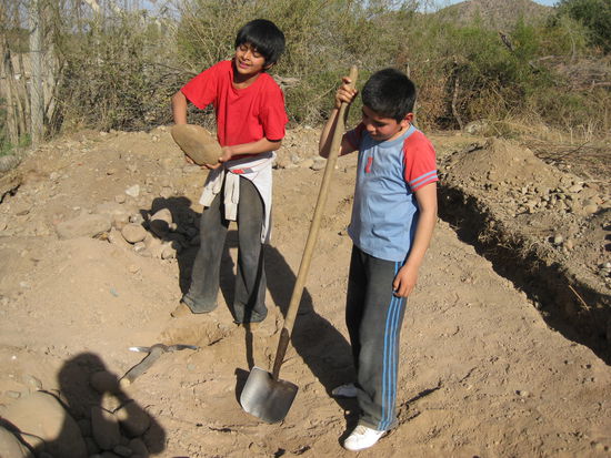 Der Famatima Berg hatte am Wochenende bei der Hitze getaut. Und nun kam das Tauwasser bei uns in San Miguel an. Und zwar in reißenden Strömen und spülte am Becken vorbei, direkt in den Garten. Der war binnen Minuten überschwämmt. Und unsere vollgeladene Schubkarre stand mitten im Schlamm. Und es kam noch besser. Auf einmal lief das Wasser durch ein größeres, vorher noch unbekanntes Loch im unteren Teil der Mauer und fühlte nach und nach das Gemüsebeet mit einer schönen ockerfarbenen Brühe. Dann irgendwann stand dieses Beet voll mit Wasser. Julian und ich legten nun die Arbeit nieder, warum hatten wir bloß stundenlang mit dem Schlauch gewässert?