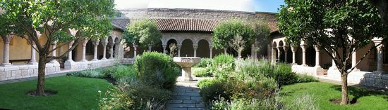 Schon von weitem erscheint 'St. Michel de Cuxa' auf dem 'Bildschirm. Wenn man nicht wüsste, dass man in New York ist..... Wir sind 5 min vor Öffnung der Tore da und können daher die zusammengetragenen Schätze aus den verschiedensten Klöstern (aus Frankreich, England und Deutschland sind kleine Schätze in der Treasury), die erst in den 30er Jahren hier zu einem 'Kloster' mit vier Kreuzgängen zusammengebaut und ergänzt wurden, allein bewundern.