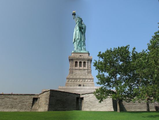Vor 18 Jahren haben wir die Statur of Liberty nur passiert mit der kostenlosen Staten Island Fähre. Monument-Tickets gibt es für heute natürlich keine mehr; man muß sie Wochen vorher buchen; daher brauchen wir uns an der Statue auch nicht anstellen.