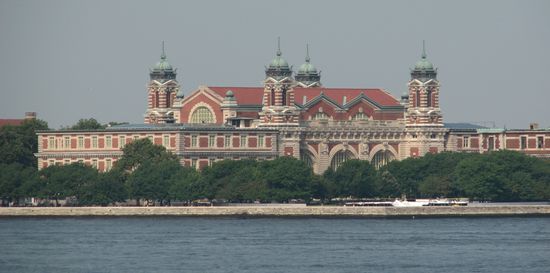 Nach einer Umrundung setzen wir über auf Ellis Island, wo wir zunächst Karten für ein 30min-Theaterstück über die Einwanderung in früheren Zeiten kaufen, von dem ich nur wenig verstehe.