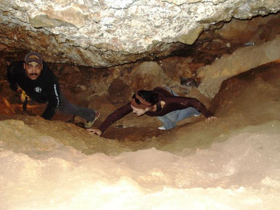 Am Eingang der Höhle konnten wir noch stehen. Vielleicht die ersten 10 Meter. Dann musste man auf den Bauch und durch ein - vielleicht 80 cm großes Loch robben. Und DANN war man eigentlich erst am richtigen Eingang.
