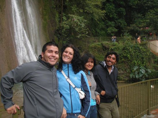 Samstag fuhren wir an den "Cola de Cabello". Ein traumhafter Wasserfall mitten in den Bergen. Das Wetter machte uns auch an diesem Tag einen Strich durch die Rechnung, aber wir sind ja nicht aus Zucker... Im Anschluß daran fuhren wir nach "Pueblo de Santiago". Ein kleines historisches Städchen mit einem schönen Aussichtspunktund und einer romantischen kleinen Kirche. Wir legten dann dort erstmal eine Siesta ein bevor es zurück nach Monterrey ging. Abends feierten wir den 29. Hochzeitstag von Mama und Papa. Da die deutsche Zeit ja 7 Stunden in der Zukunft liegt, konnten wir, obwohl es hier erst der 17. war, bereits feiern. Auch Ehrengäste nahmen an der Feier teil. An diesem Abend fand das Fussballspiel Monterrey gegen Chiapas statt und überraschenderweise kehrte die Gegenmannschaft, also Chiapas, im gleichen Restaurant ein und nahm am Tísch neben uns Platz. Nach einem guten Abendessen fanden wir dann noch den Weg in die Stadt. In einer Bar mit Live-Musik lernte Gerhard dann sogar noch Salsa tanzen
