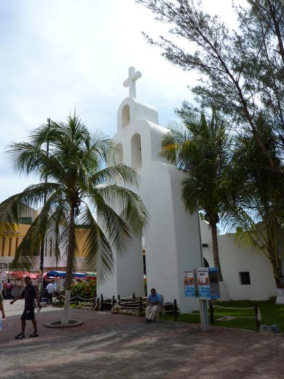 Das ist kurz vorm Strand, eine Kirche mitten im Stadtkern, sieht aus wie aus einem Western, jetzt muss nur noch John Wayne raus kommen