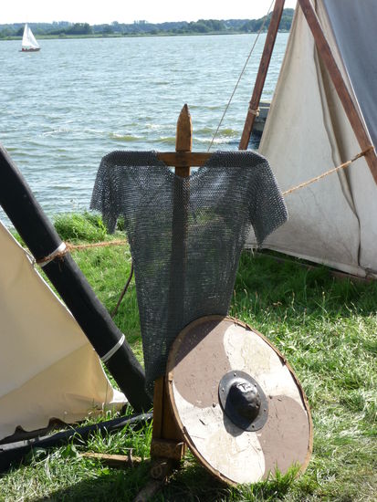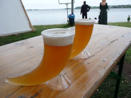 Auf dem Gelände direkt an der Schlei gab es einen Wikinger-Markt mit überwiegend kunsthandwerklichen Produkten. Besonders beim Schmuck waren einige besonders schöne Stücke dabei, denen ich nicht widerstehen konnte. Nach einem zünftigen Wikinger-Mahl in der Abendsonne und Live-Musik auf der Bühne verweilten wir noch einige Zeit in diesem stimmungsvollen Ambiente.