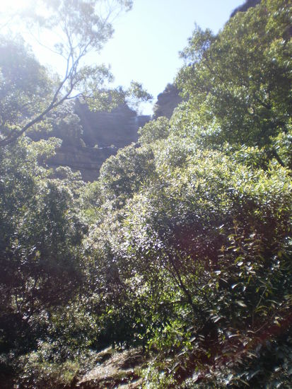 Der Pfad ging durchs Tal vorbei am Fuss der three sisters. Ca. 2,5 Stunden bin ich durch den Wald gelatscht und ich fand's toll. Ehrlich, ich hab gar nicht genoergelt. Als Beweis s. nachfolgendes Foto im Vergleich zu Foto Nr. 2