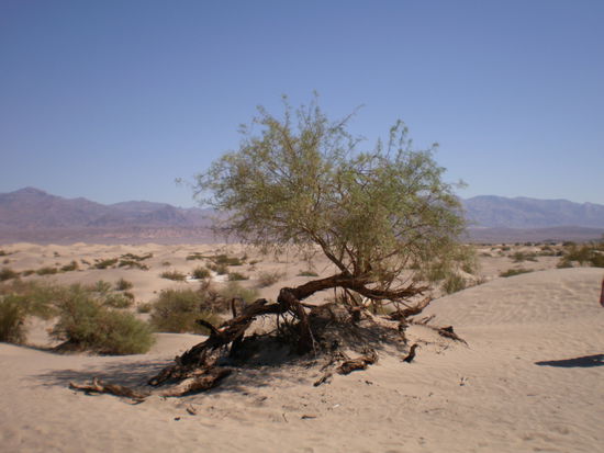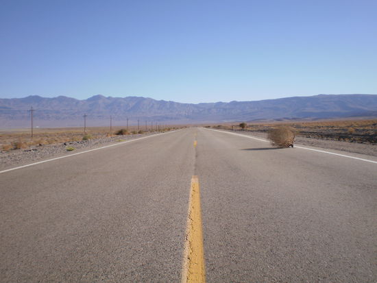 Lone Pine, wo wir uebernachtet haben, ist der letzte Ort vor Death Valley. Kaum verlaesst man die Stadt (wenn man das ueberhaupt so nennen darf), beginnt die ausgetrocknete Steppe.
